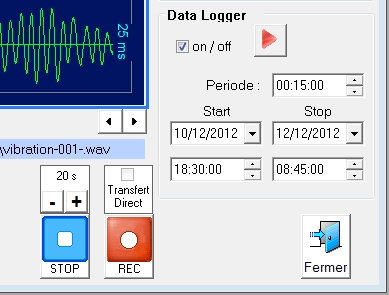 de l'amplitude d'une vibration sur la durée des enregistrements, cliquez sur